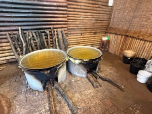 Kosilo čisto osnovno, a zadovoljivo (juha, riž, nudelci, meso v omaki, sadje..). Postanek pri vasici Kamu, ki je dostopna samo s čolnom. V vasi živi nekje 957 prebivalcev, ki za zdravljenje še vedno uporablja šamana. Pokažejo nam še šolo, kamor naj bi hodilo 25 otrok v starosti 6 do 11let, kasneje pa gredo nekateri v večje mesto ali pa opustijo šolanje. Mnogi se še vedno poročijo pri 16ih. Oba sva malo čakala, da začnejo kaj prodajati; prositi, pa ne duha ne sluha o tem.