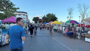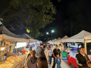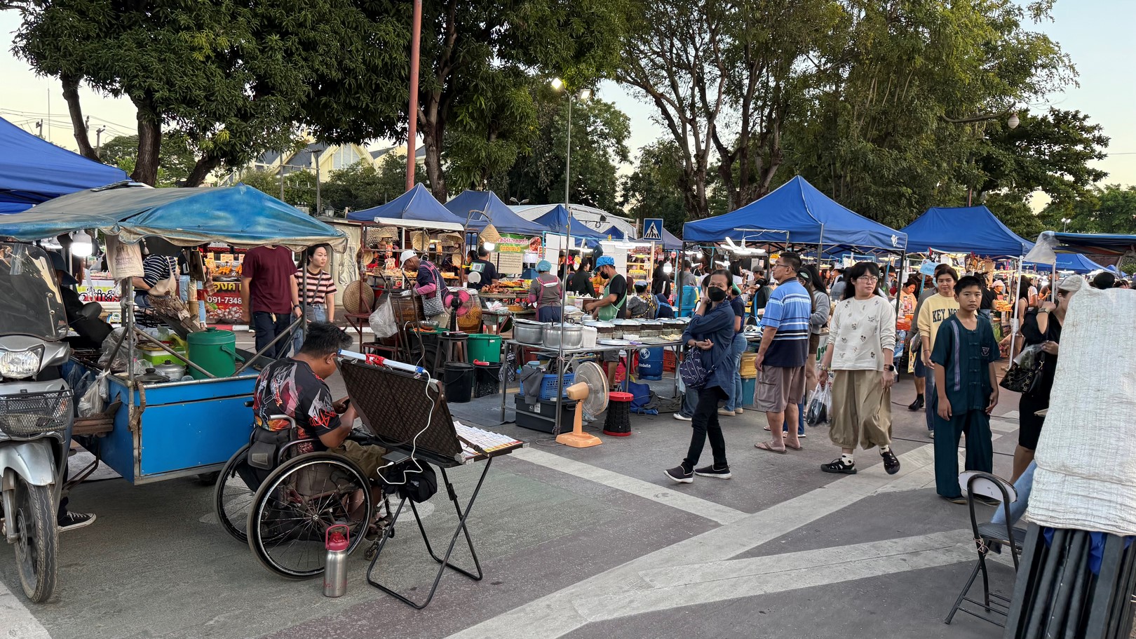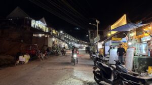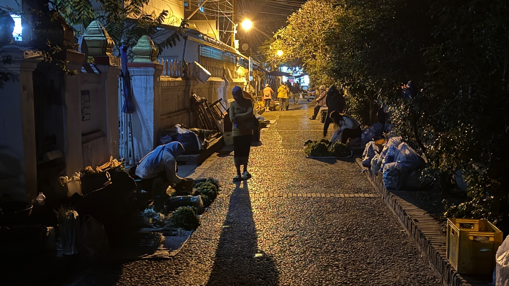 Po ogledih in celem dnevu na poti, se lačna odpraviva na nočno tržnico, ki jo domačini postavijo na zaprto ulico Phakong. Odpre se po četrti uri popoldne in je odprta do devete ure zvečer.