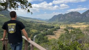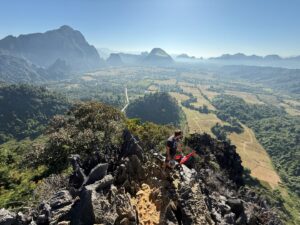 Po zajtrku pa greva na razgledno točko Nam Xay, ki leži na nadmorski višini 400m. Vzpon traja nekje pol ure in ni ravno enostaven, predvsem če imaš skupino Kitajcev pred sabo. Na vrhu pa razgled na vse strani in namesto klopce motorji, ki poskrbijo za dodatne foto trenutke. Velja, da je iz te točke lep sončen zahod.