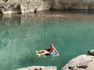 Izviri/Cool springs so v bistvu mrzli izviri, lagune. Ponujajo osvežitev v kristalno modri vodi. Za naju se je osvežitev začela malo drugače. Po prihodu sva ugotovila, da imava prazno zadnjo gumo. Kar stemnilo se nama je, saj sva bila skoraj uro stran peš od prve vasi.