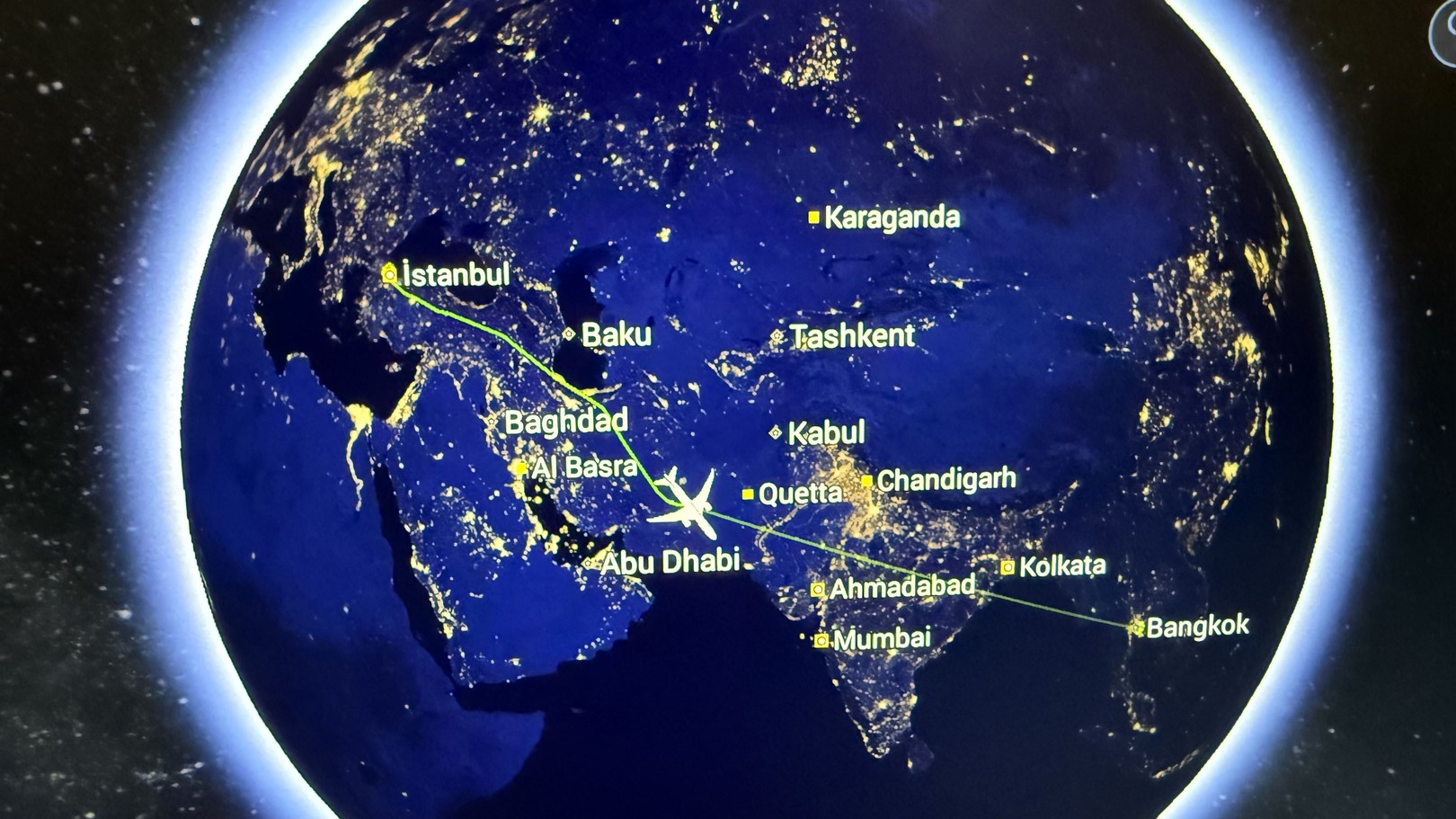 Vse je potekalo po planu, nato pa smo sedeli na letalu pol ure brez kakršne koli informacije. Miha bolj hladno jaz pa v skrbeh kako bova ujela povezan let iz Istanbula v Bangkok. Že v štartu sva imela samo 1h časa za prestop. No takoj po prihodu sva se pognala v tek do najinih naslednjih vrat, ki so se nahajale v delu D (pristala sva v A). Po ogledu monitorja nama je kmalu postalo jasno, da se nama kaj preveč ne mudi. Na informacijskih tablah se je izpisalo obvestilo, da tudi najino naslednje letalo zamuja za dobre pol ure. Pot do vrat sva nadaljevala bolj mirno. Na koncu sva vzletela iz Istanbula uro kasneje od planiranega vzleta. Torej, vse v stilu zamud. Popoldansko-nočni let sva preživela ob ogledu dokumentarcev in filmov. O spanju ne duha ne sluha.