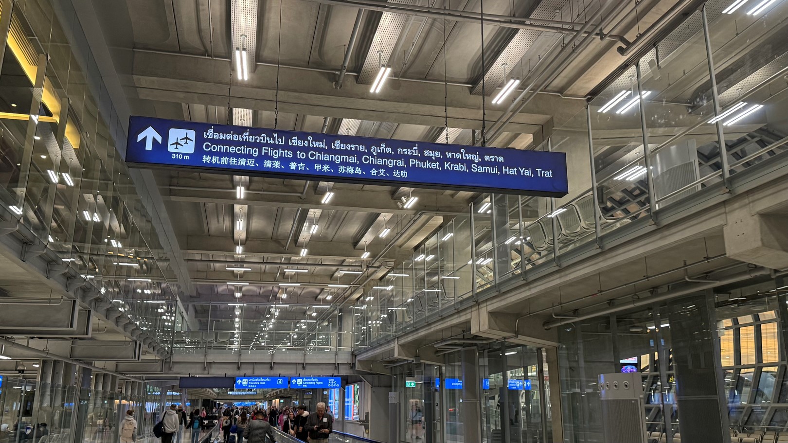 Z dobro uro zamude malo pred šesto uro zjutraj pristaneva na letališču Suvarnabhumi v Bangkoku. Hitro se odpraviva na del letališča za notranje lete.