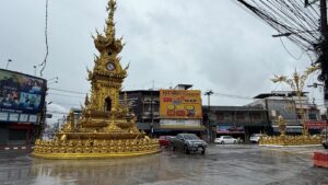 Sredi prometne ceste stoji krožno križišče na katerem se nahaja Clock tower (urni stolp). Zlati stolp z uro je bil zgrajen leta 2005. Tako kot Beli tempelj ga je zasnoval Chalermchai Kositpipat. Trikrat na dan v večernih urah poteka desetminutni zvočni in svetlobni spektakel.