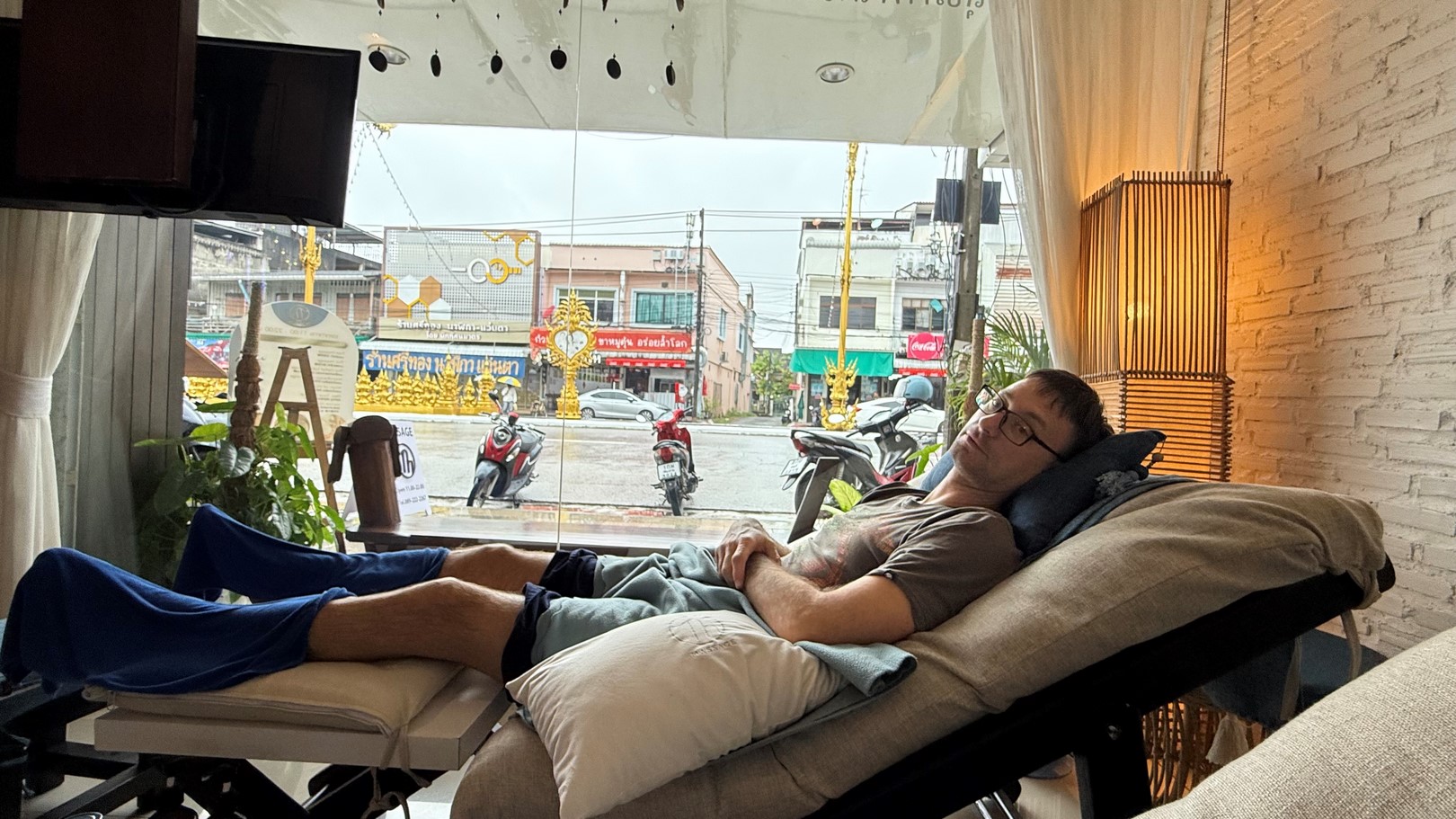 Za slovo od Tajske še zadnja masaža za mene, Miha pa se je raje vrgel pod škarje in uredil frizuro.