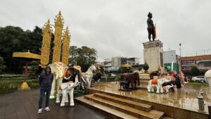 Po vselitvi v guesthouse se odpraviva raziskovati mesto, dež nama pač ne bo ovira in tudi domačinom ni. Ti kljub dežju z njihovimi motorji drvijo po svojih obveznostih; eni s pelerinam, drugi z dežniki, tretji pa brez vsega.