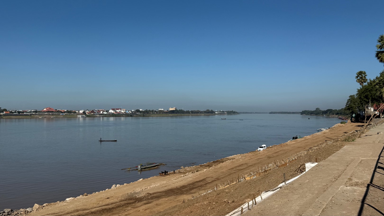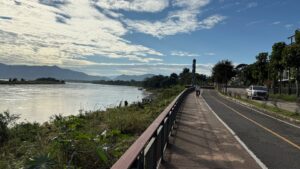 Končno nama je posijalo sonce, zato se odpraviva na jutranji sprehod po obrežju reke Mekong. Presenetljivo je ob reki speljana kolesarska sprehajalna pot.