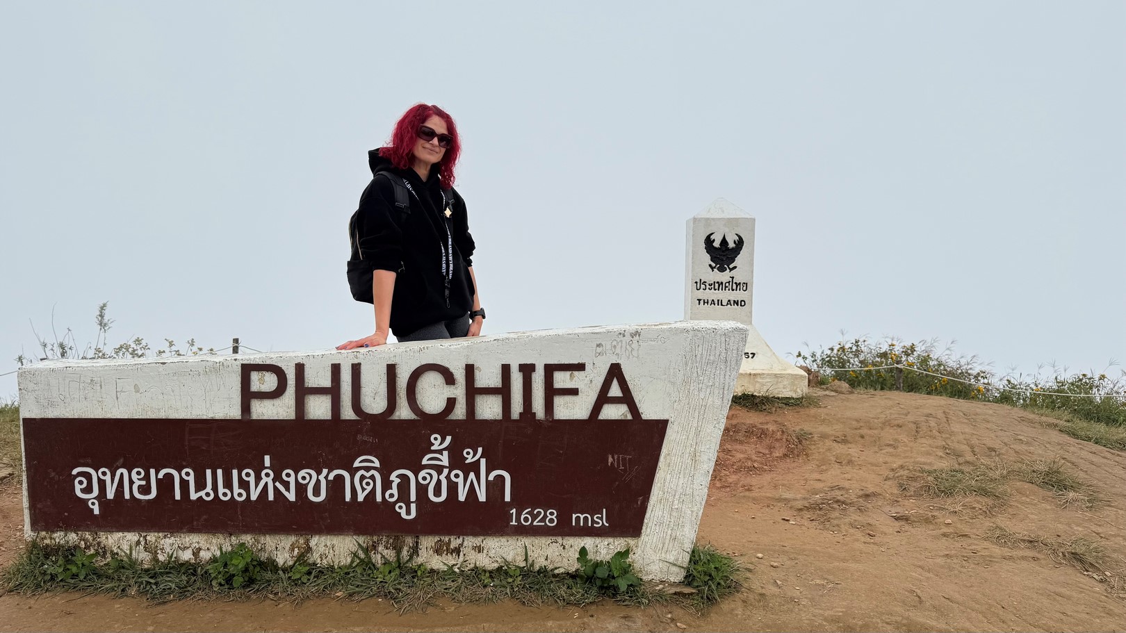 Najin cilj je razgledna točka v nacionalnem parku Pho Chi Fa. Park se nahaja na 1.628m nadmorske višine v gorovju Doi Pha Mon. Sicer je po poti več razglednih točk, a najbolj pomembna je tista na vrhu, katere del stoji na tajski strani, del pa na laoški.