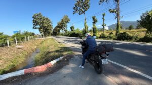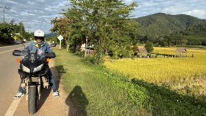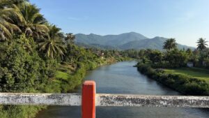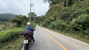 Lep dan kar kliče po vožnji, tako da pot nadaljujeva najprej skozi mesta, potem se mesta umaknejo riževim poljem in zaselkom. Kmalu se cesta začne vzpenjati v hribe, razgledi pa postanejo vedno lepši. Na nekaterih delih je deževje odneslo cesto, zato previdnost ni odveč.