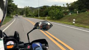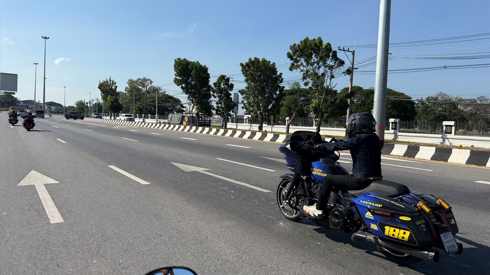 Zopet najameva motor, tokrat Honda skuter in se odpraviva raziskovati. Najina gostitelja sta nama priporočala obisk jame Phraya Nakhon, ki se nahaja nekje urico stran od mesta. Cesta sicer ni nekaj zanimiva, dvopasovnica po kateri nama delajo družbo motorji znamke Harley Davidson.