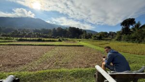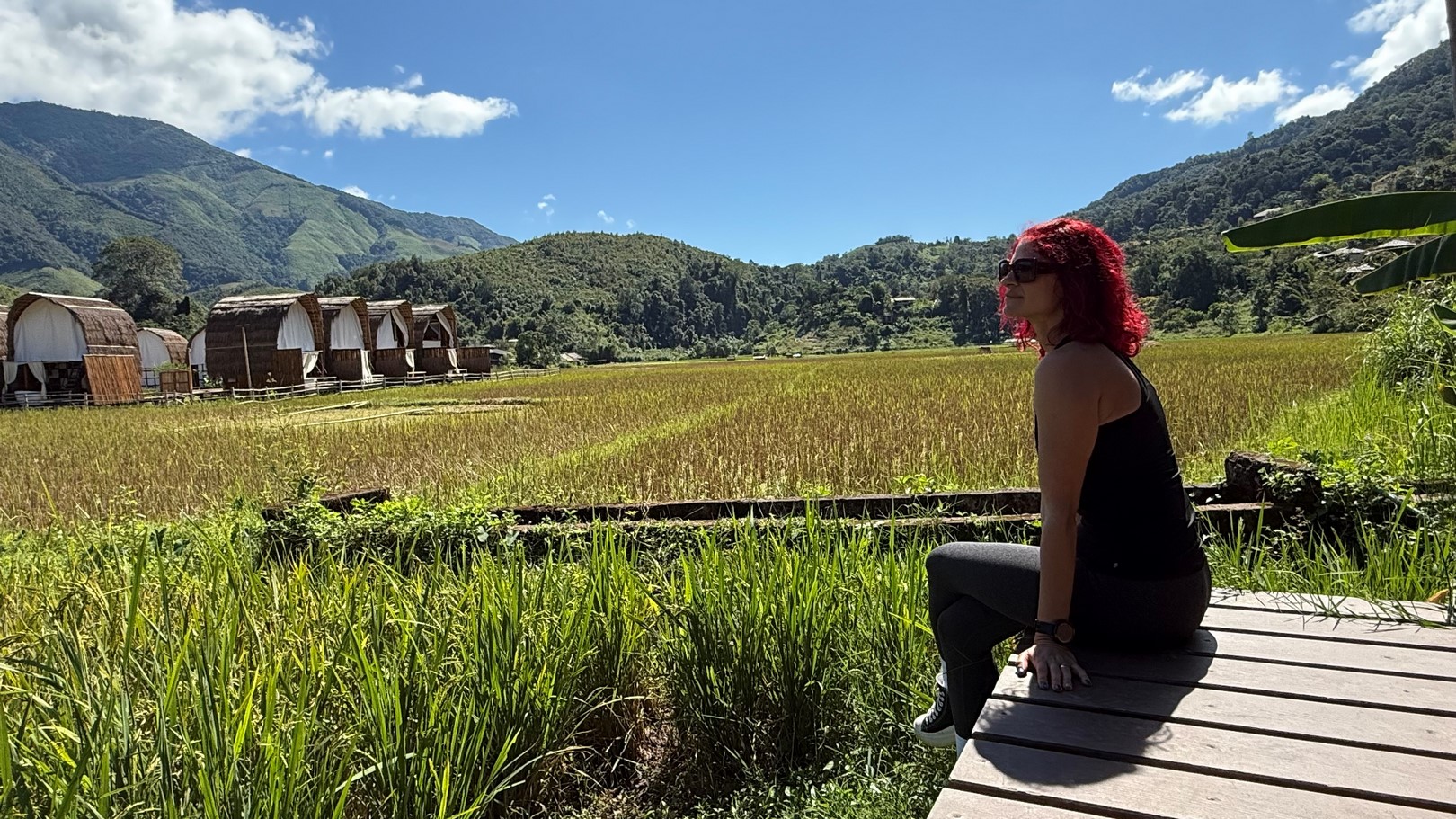 Iz enega nacionalnega parka nadaljujeva v drugega; Khu Nan. Narodni park Khun Nan pokriva površino 246 kvadratnih kilometrov. Rastlinski habitat so zimzeleni gozdovi na srednji nadmorski višini, čeprav je dostop do njega nekoliko omejen. Najin cilj je vasica Sapan, ki se nahaja v okrožju Bo Kluea. Sapan velja za idilično dolino, ki se skriva med gorovji. Tu okoli najdeš razne glampinge, kampe in druge vrste nastanitev, ki so zrastle v zadnjih letih. Cesta je v teh koncih na številnih mestih načeta zaradi plazov. V bistvu zadnja dva dni gledava te “kampe”, ki so na vsaki razgledni točki, pa bolj kot ne samevajo.