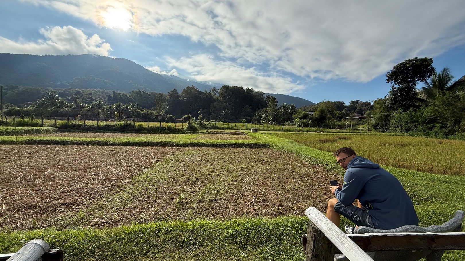 Po zajtrku se odpeljeva nazaj proti Chang Raiu. Cesta najprej vodi čez hribe s pogledi na polja, pa se tu in tam na kakšni razgledni točki tudi ustaviva. Potem pa počasi pride ravnina, dvopasovnica, mesta in gneča.