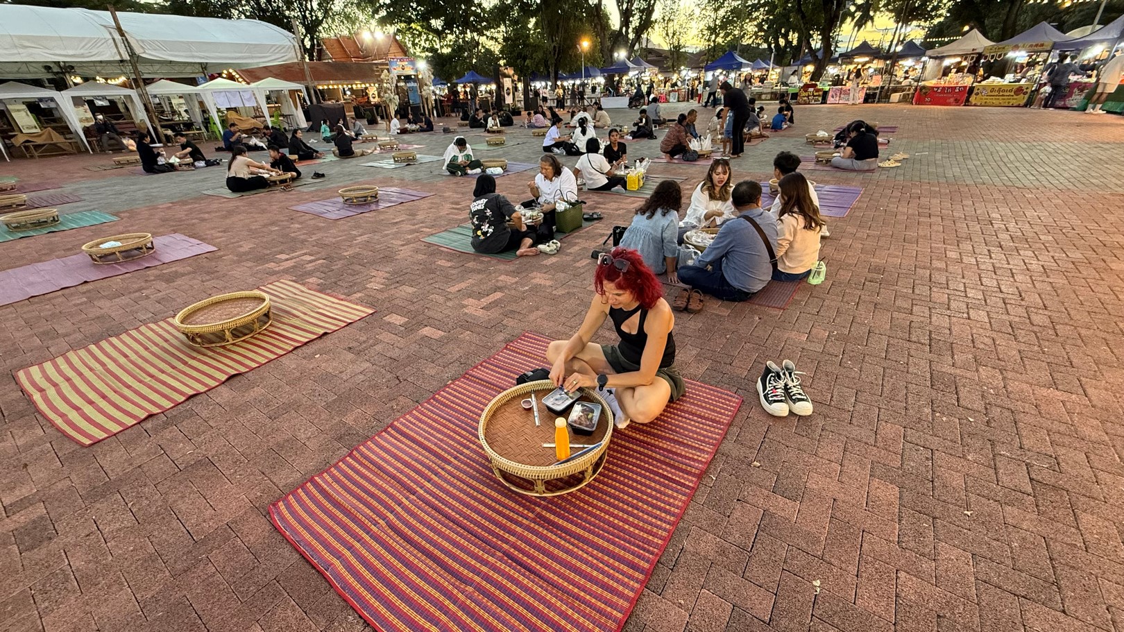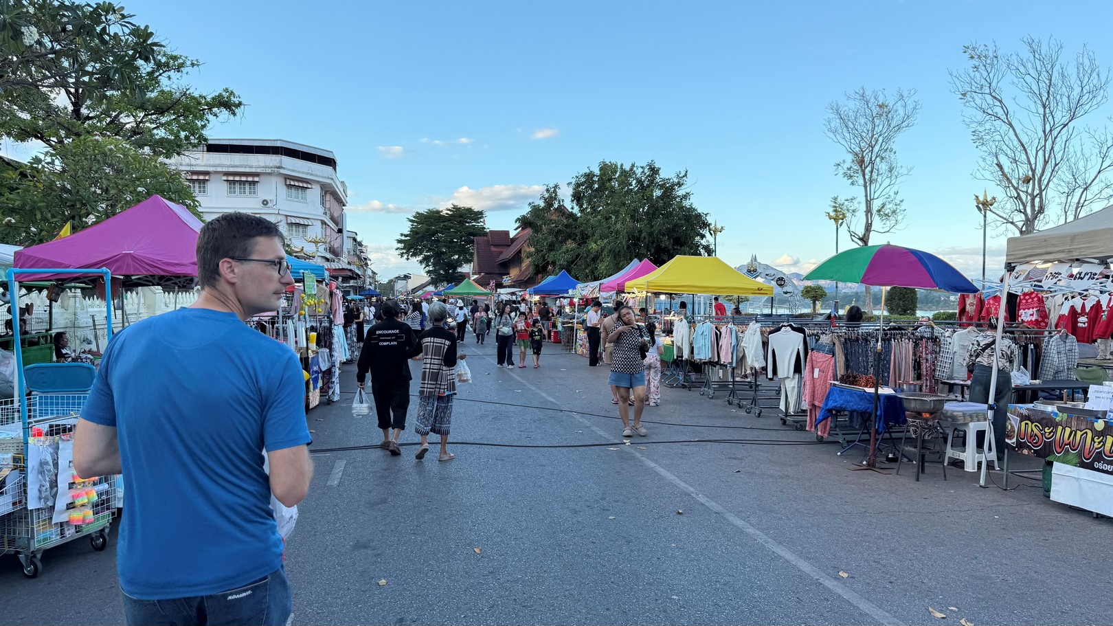 Preostanek dneva pa masaža, kosilo in nočne tržnice. Najprej greva na Sobotno nočno tržnico (Saturday walking street night market) kjer je takšna gneča, da enostavno hodiš z vrsto. Za namen tržnice se zapre cela ulica in postavijo stojnice. Prodaja se vse, nekatera oblačila zgledajo malo rabljeno. Za jest prostora ni.