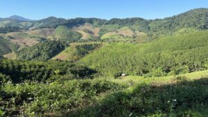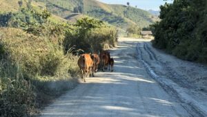 Narediva manjši sprehod, potem pa dalje. Cesta postane bolj vijugasta, okolica pa griči, hribi, zelenje, nasadi bananovcev. Žal je tema zgodaj; okrog pol šeste zvečer. Pa ravno, ko se je začelo zanimivo.