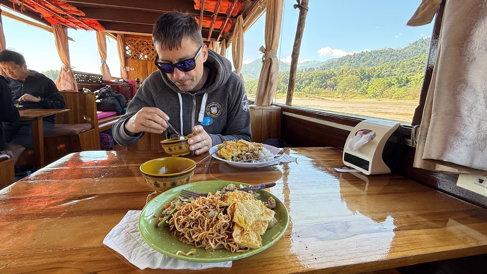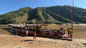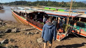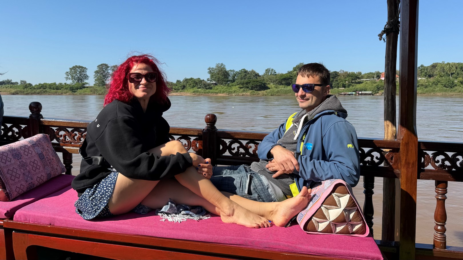 Čas je za nadaljevanje najinega potovanja v Laosu. Pri pregledu informacij, kako in kaj sva naletela na opcijo dvodnevnega transferja od meje Laosa do Luang Prabang s čolnom (križarjenje) po reki Mekong. Obstajata dve opciji, VIP (omejeno število potnikov, kosilo, ogledi) ali pa lokalni čoln (gneča, prerivanje, premalo stolov…). Želela sva bolj umirjeno potovanje, zato sva izbrala VIP križarjenje po reki Mekong, ki sva ga rezervirala preko Nagi Mekong križarjenja. Križarjenje traja dva dni, z obveznim postankom v Pakbengu, ker ponoči čolni ne plujejo. Prvi dan pa je zgledal takole: