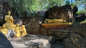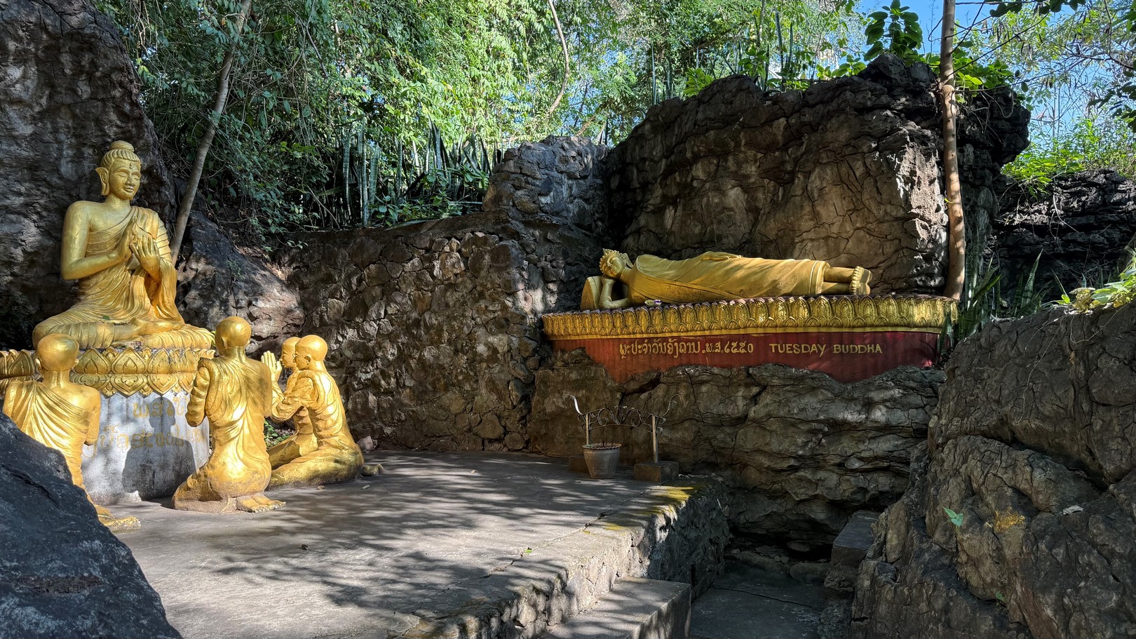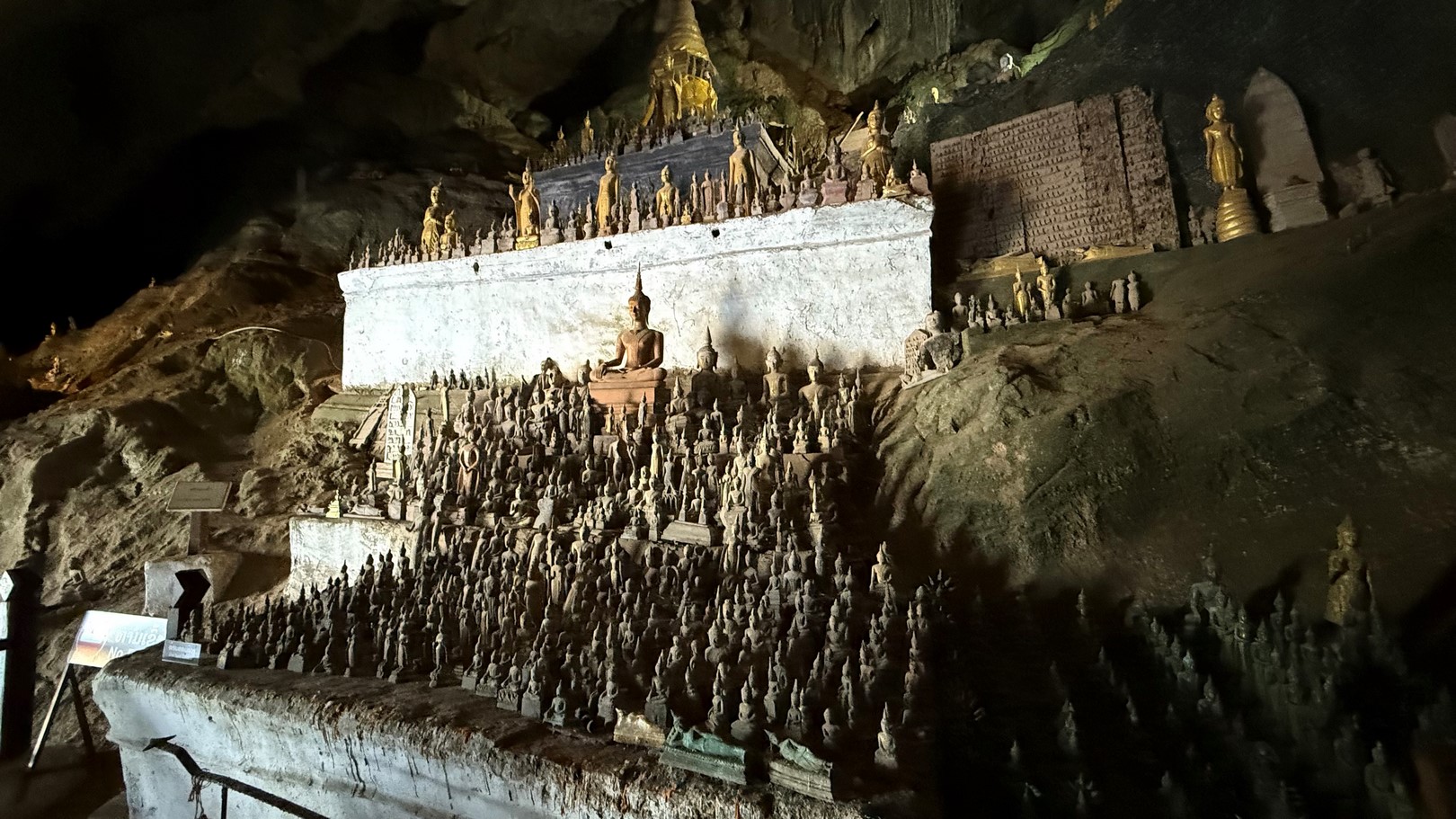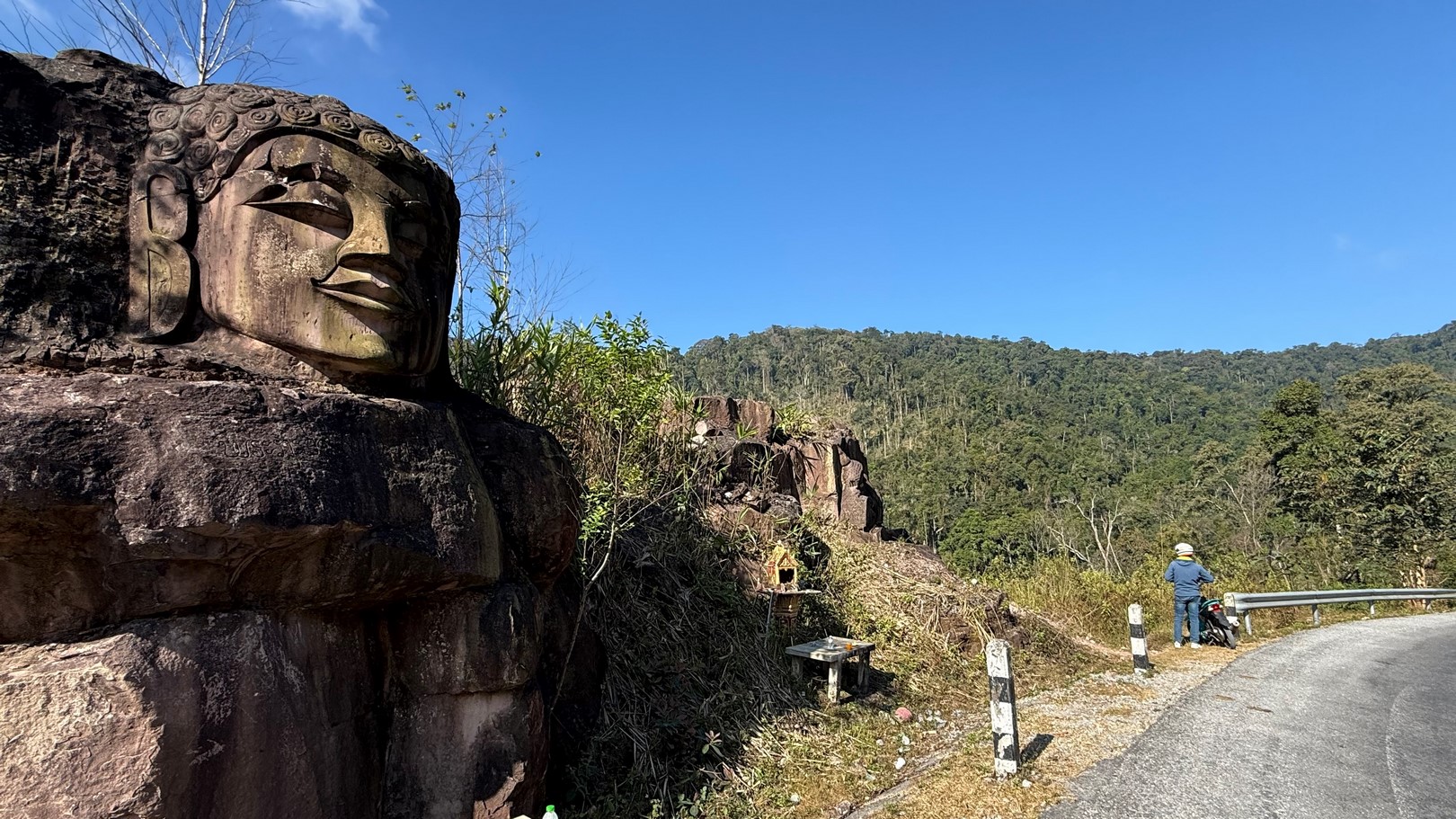 Vklesavanje Bude v skalo je laoška tradicija, ki sega v vsaj 10. stoletje, vendar ni povsem jasno, koliko so peščenjakovi kipi iz Khammouaneja stari in zakaj so tam na obrobju narodnega parka Nakai Nam Theum. Miha je enem kar na glavo splezal.