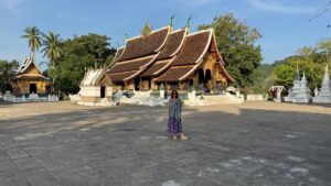 Na ulicah Luang Prabanga se pridruživa kombijem, ki pobirajo turiste za prve jutranje vodene ture. Mesto se komaj dobro prebuja, midva pa že na ogledih.