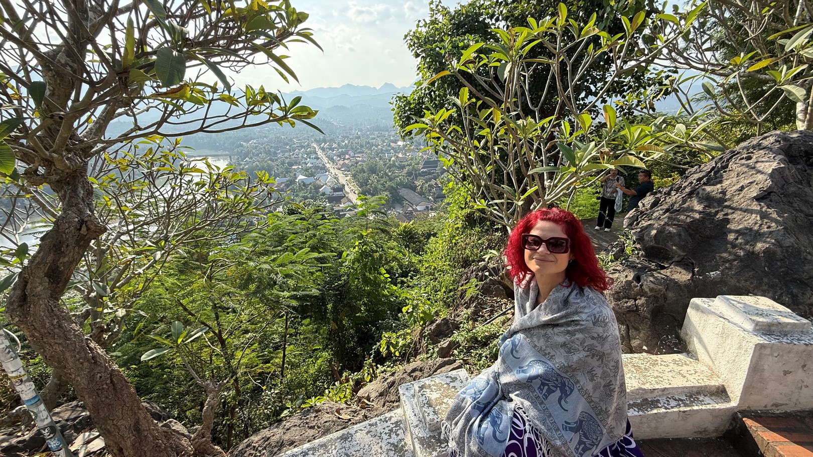 Motor bo danes malo počival, midva pa malo bolj športno aktivna. Za začetek sledi vzpon na razgledno točko Phar Khew Lom, ki leži na nadmorski višini 1.100m in ponuja 360 stopinj razgled na Nong Khiawa. Za vzpon na razgledno točko je potrebno plačati 2,5€/osebo.