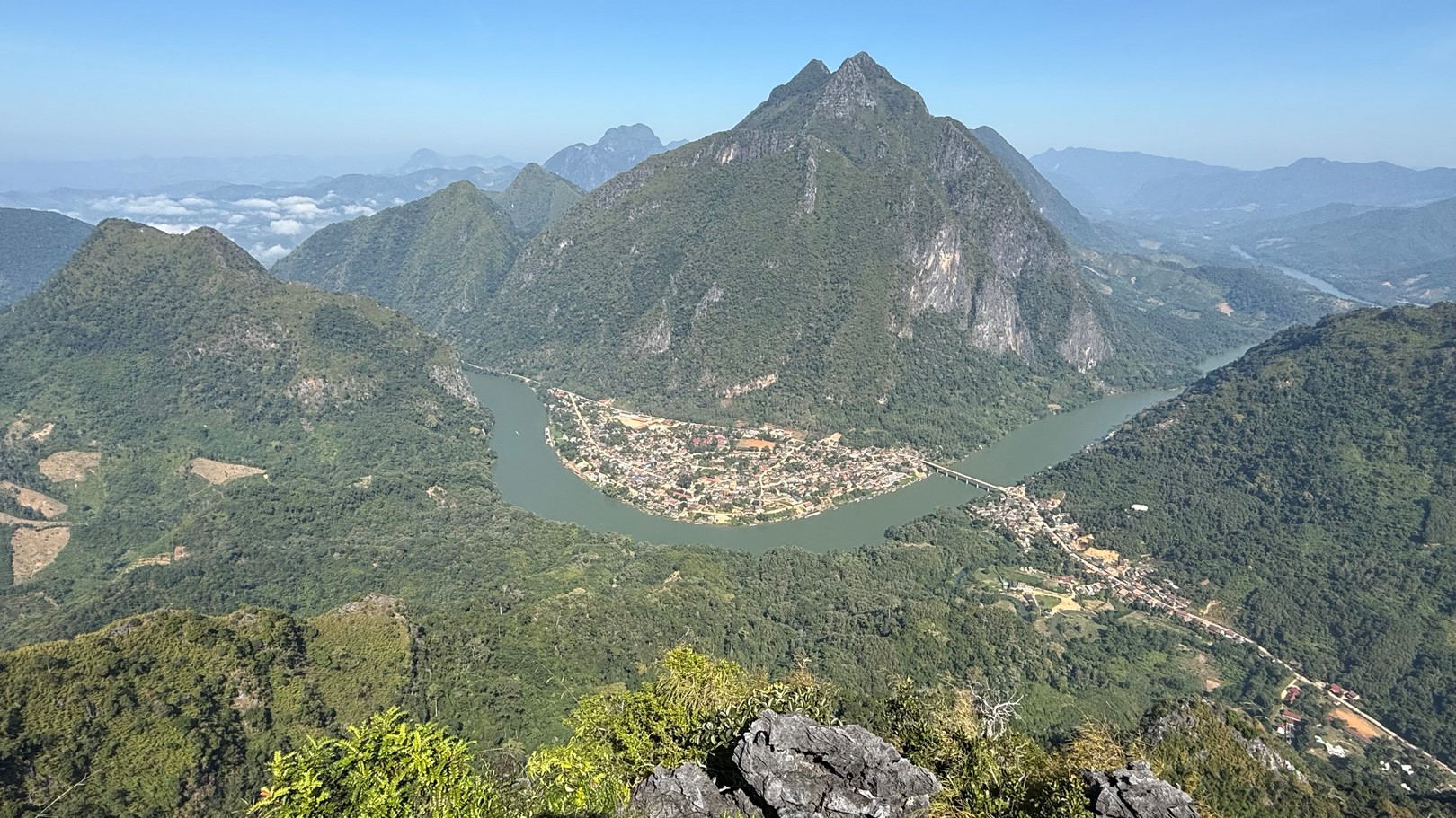 Najin cilj je vas v severnem Laosu; Nong Khiaw. Nekoč je vas veljala za skrivnost v katero je le peščica zavila, danes pa je cilj pohodnikov in motoristov, ki izvajajo severni loop. Leži med dvema gorama na bregovih reke Nam Ou. Nam Ou je ena najpomembnejših rek v Laosu. Teče 448 km od province Phongsaly do province Luang Prabang. Reka izvira v Muang Ou Nua blizu laoško-kitajske meje in prečka severne laoške gore in soteske, dokler se ne izlije v reko Mekong v Ban Pak Ou. Je najdaljši pritok reke Mekong.