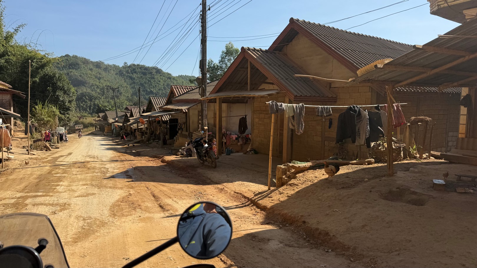 Po dveh urah vožnje sledi postanek v vasici Ban Bo, ki velja za mešano vas med laoškim in Kamu ljudstvom. V vasi imajo elektriko, povezavo s cesto in se predvsem ukvarjajo s prodajo ročno izdelanih izdelkov; šalov, riževega viskija,…. V nas se zapodijo otroci, ki ponujajo šale. No naša mehka srca podležejo, Miha pa si raje kupi stekleničko riževega viskija.