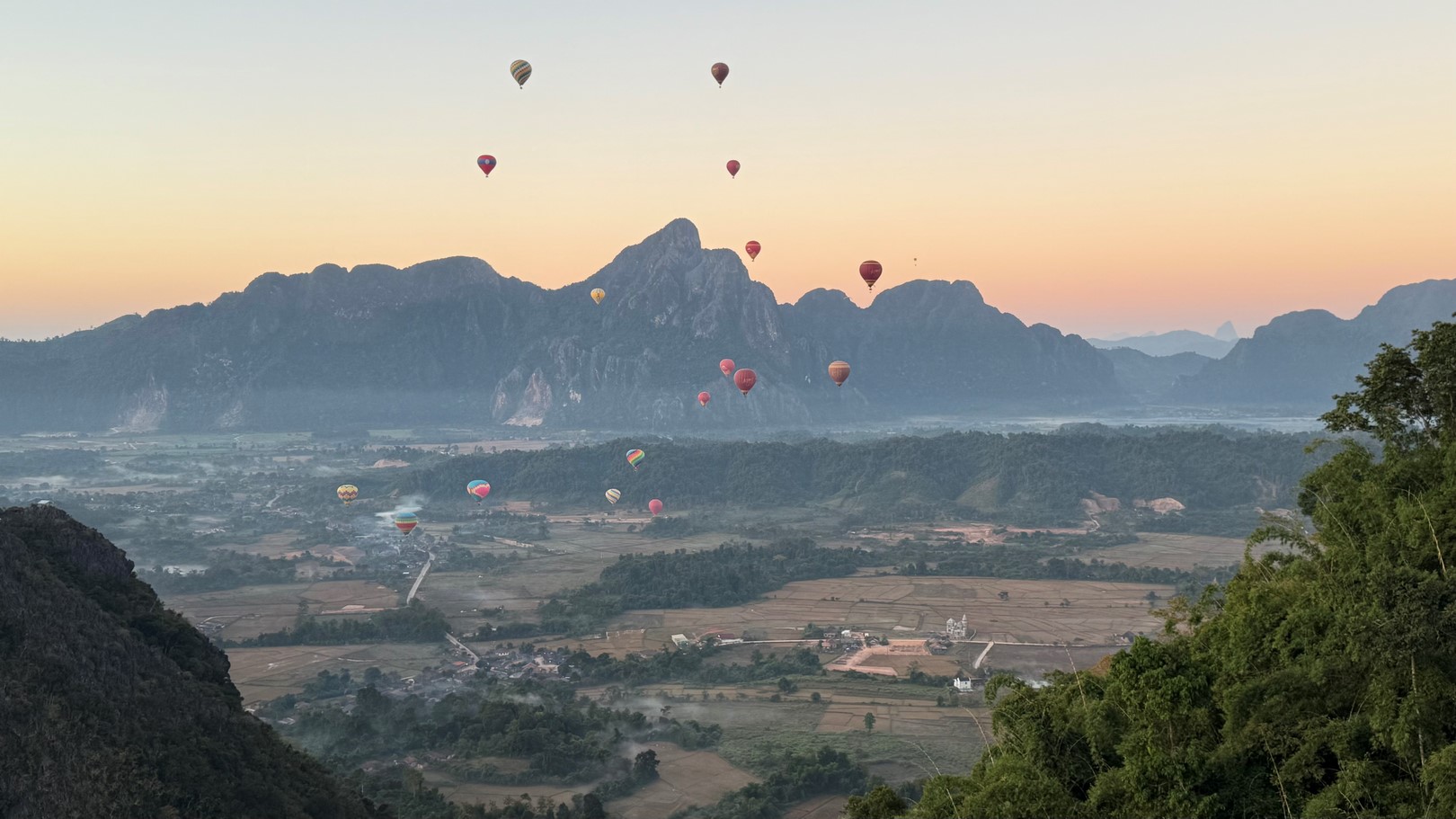 Dan začneva zgodaj, malo čez peto uro. Po temi se odpeljeva do iztočne točke za vzpon na razgledno točko Pha Ngern, ki leži na približno 700 metrov nadmorske višine in je obrnjena proti vzhodu. Idealna za najin cilj; ogled sončnega vzhoda. Vzpon sicer ni enostaven, a lažji od prejšnjih. Na vrhu sva skoraj sama. Baloni so že v zraku in počasi se okoliški hribi začnejo barvati v rumeno. Razgled je čudovit in lepšega začetka dneva enostavno ni. Za spust in vzpon na razgledno točko sva potrebovala dobro urico.