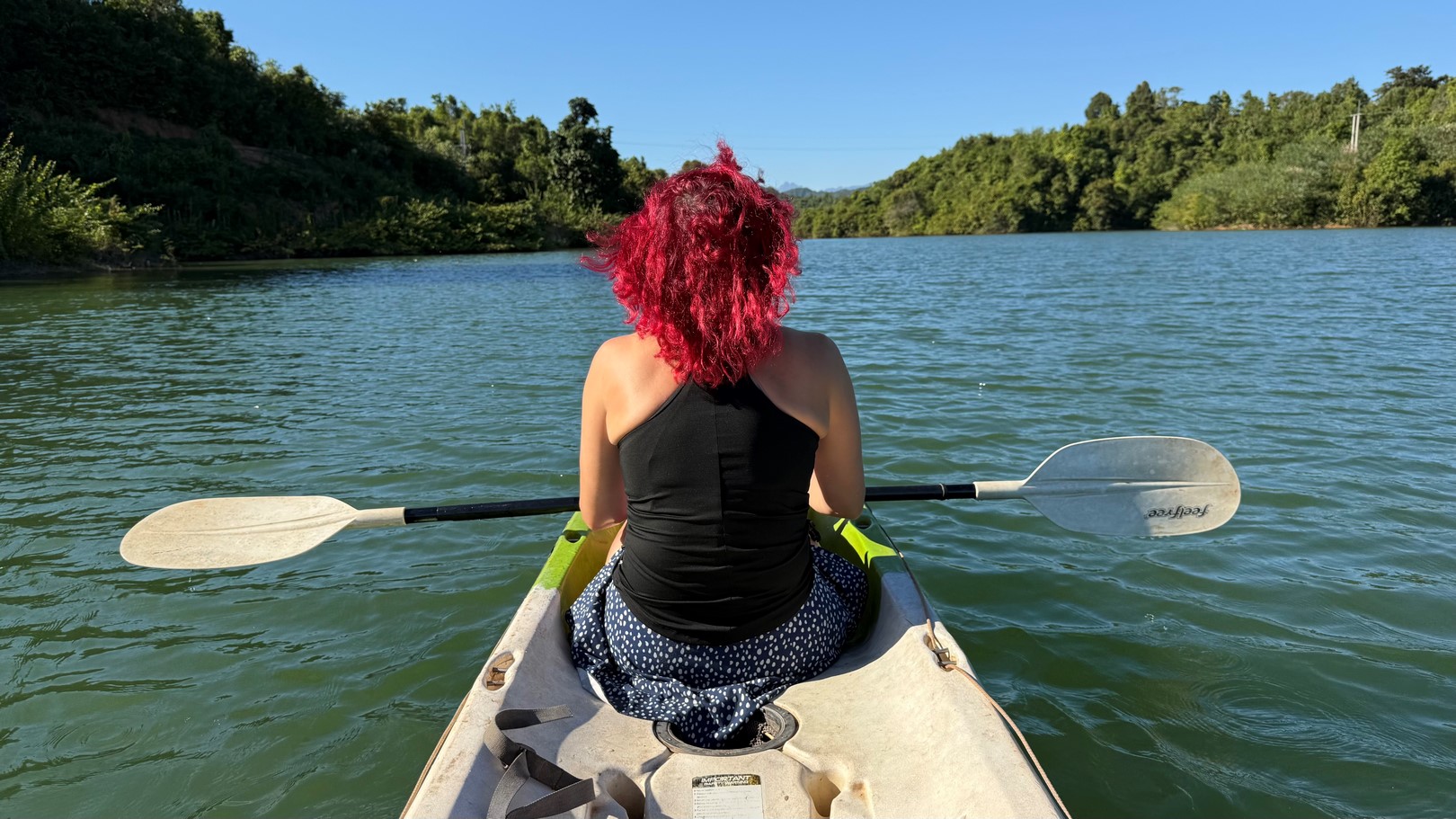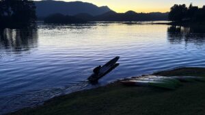 Za eno noč se nastaniva v resortu Green View, kjer je najin bungalov idilično ob jezeru. Miha seveda ne misli, kaj preveč počivati. Pa sva kmalu že na kajaku in raziskujeva. Zadnje sončne žarke pa preživiva ob zvokih tipičnega laoškega čolna, ki naju malo popelje med številne otoke jezera.