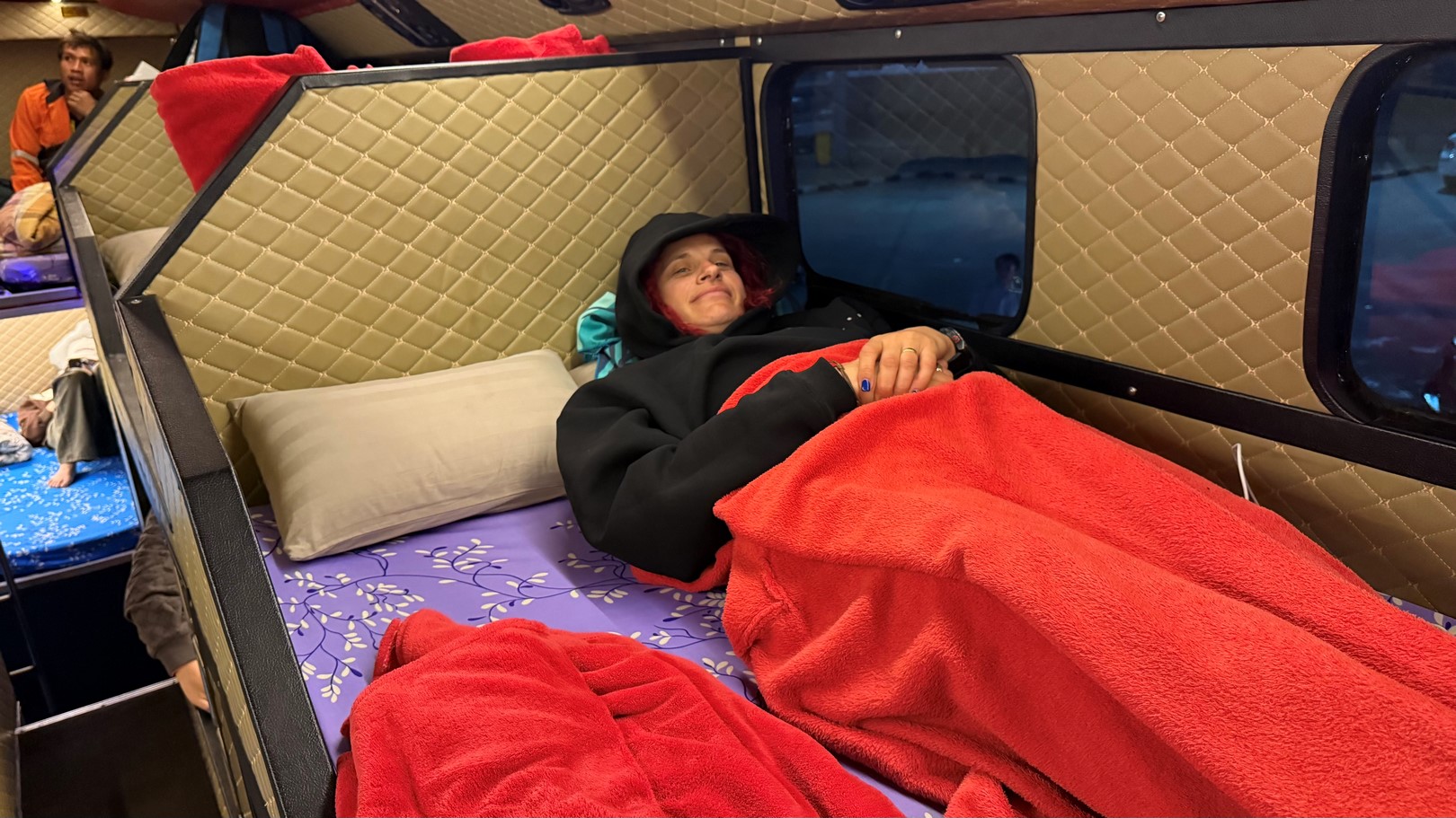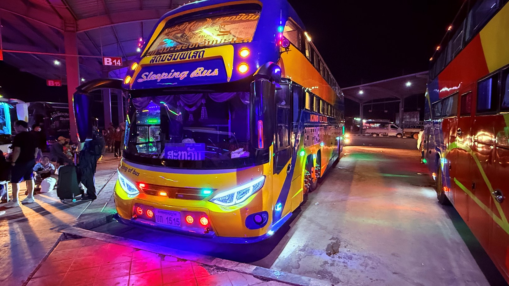 Malo čez dvajseto zvečer se vkrcava na spalni bus za Thakhek. Vožnja naj bi trajala do pete ure zjutraj. Po manjšem prilagajanju oba hitro zaspiva. Avtobus pa presenetljivo pripelje na najin cilj ob dveh zjutraj. Na srečo se je Miha dogovoril z najinim gostiteljem v Thakheku, da lahko prideva sredi noči.