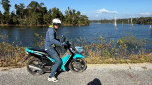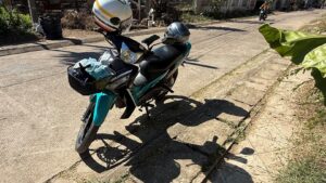 Po priporočilu rentava motor v izposojevalnici Pokemon. Pri njih za naslednje štiri dni pustiva tudi vso odvečno prtljago. Najin prevoz je skuter znamke Yamaha (tokrat bolj lokalni motor).
