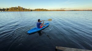 Za konec dneva sva šla naokrog z motorjem, Miha pa še na kajak po laguni ob najinem resortu.