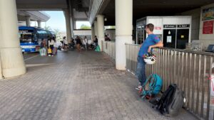 V Bangkok prispeva okoli pete ure. Avtobusna je velika, midva pa morava poiskati postajališče kombijev, saj imava od Bangkoka do Hua Hina transfer z vanom. Ti Tajci nama skoz dajejo vetra. Do odhoda najinega kombija je po sporedu in rezervaciji še več kot pol ure in po prevzemu kart, naju napotijo na 48. postajališče. Vmes naju popoka šofer Vana iz 146. postajališča, seveda preveriva in gre v pravo smer. Iz postajališča se odpeljeva več kot pol ure prej. Dobro, da sva bila prej na postaji…