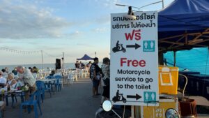 Najin cilj je plaža Hua Hin, ki pa je zaradi plime komaj prehodna, tako da odpade poležavanje na plaži. Greva dalje za nosom. Kmalu ugotoviva, da plaže tu niso kaj preveč lepe, oziroma je omejen dostop do njih.