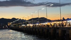 Večer preživiva na pomolu, kjer je nočna tržnica z živo glasbo.