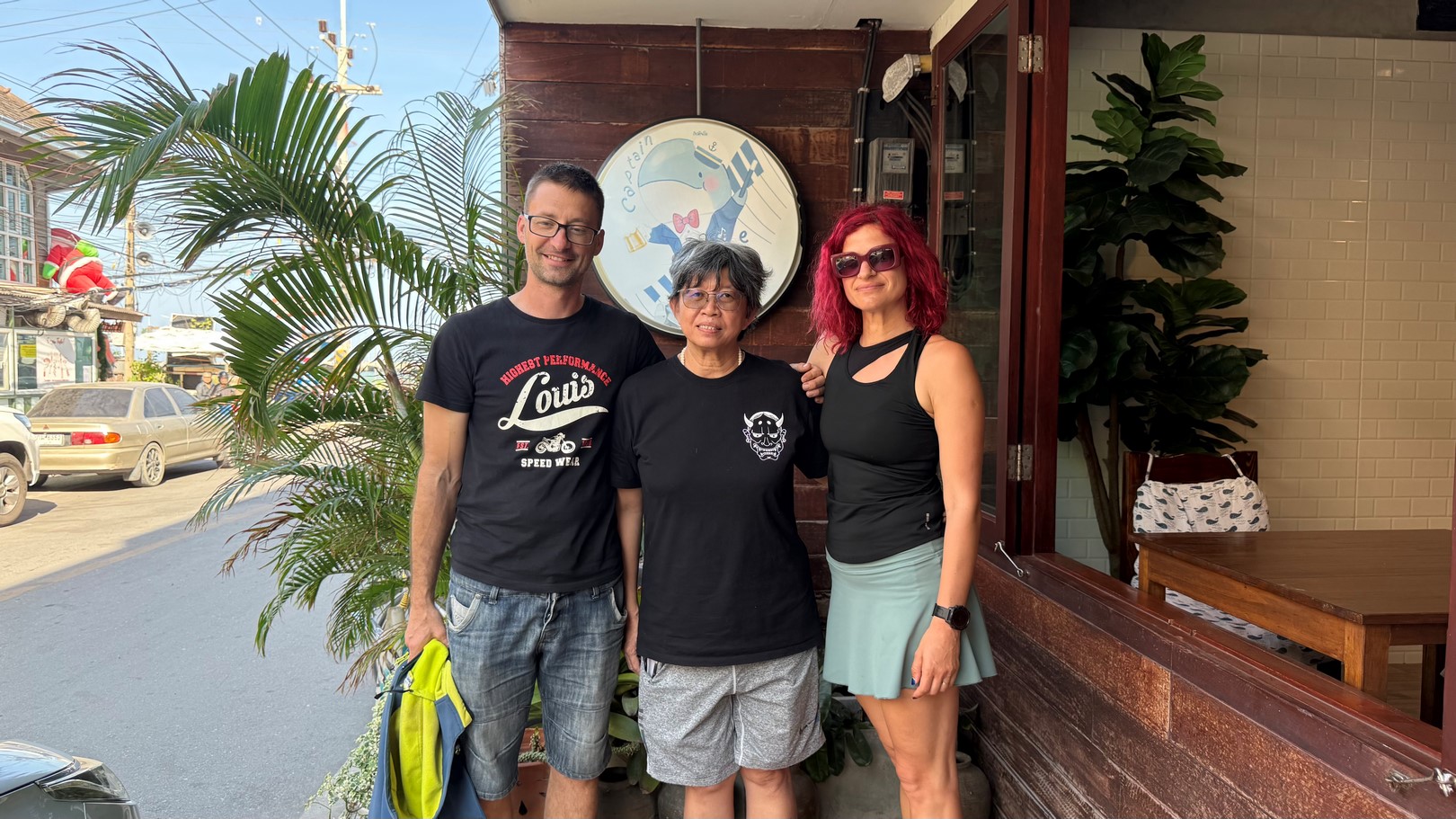 Vmes urediva še sim kartico pri Data. Sledi še kontrola potnih listov in arrival card (obvezna od maja 2025) ter ponovni pregled prtljage. Potem pa zopet vkrcanje na letalo, tokrat letalske družbe Thai Airways. Še dobra ura leta in sva na cilju.