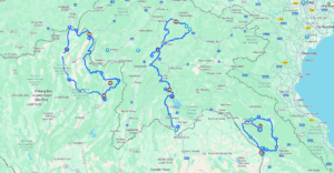 Cesta so od tu izboljša in vožnja je bolj lahkotna saj greva v hribe. Vasice tu so spet manjše a bolj urejene.